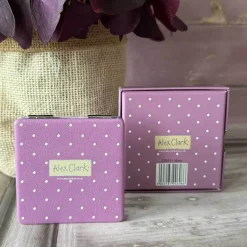 Alex Clark presents the ‘Misty’ Vegan Leather Compact Mirror, a perfect blend of fun and practicality for your everyday needs. Featuring a double mirror, this compact is wrapped in an adorable fluffy bunny and dandelion illustration, inspired by the English countryside and Alex’s love for animals. The soft vegan leather not only adds a touch of luxury but is also a cruelty-free and eco-conscious alternative to traditional leather. Presented in a matching gift box, this charming compact would make a lovely gift or special treat for yourself!