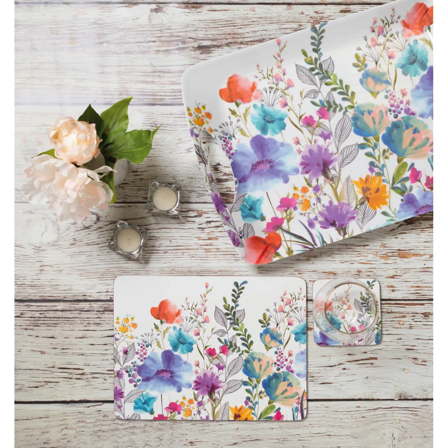 Creative Tops presents the Set of 6 Coasters in Meadow Floral design. Protect your furniture from messy spills and heat damage with these gorgeous coasters, featuring a beautiful pattern of wildflower blooms. Perfect for creating a countryside feel to your home and table setting.