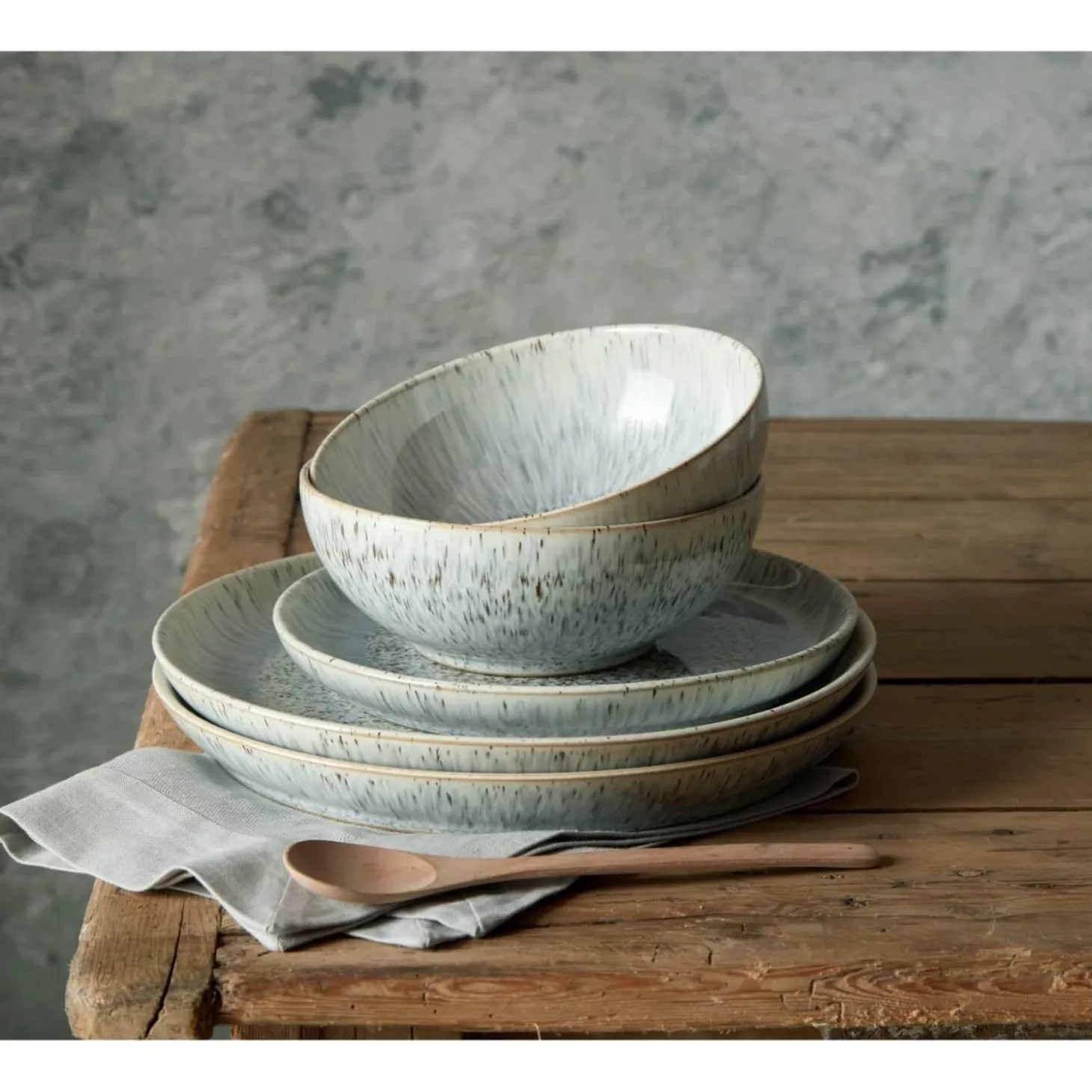 The Denby Halo Speckle 12 Piece Dinner Set is perfect for breakfast, lunch and dinner with its unique design which incorporates two tones of glaze to produce a striking, speckled finish. Comprising 12 pieces made by Denby in Derbyshire from vitrified stoneware giving strength, durability and chip resistance, this set is perfect for special and everyday occasions. Dishwasher, microwave, oven and freezer safe. 10 Year Denby Guarantee.