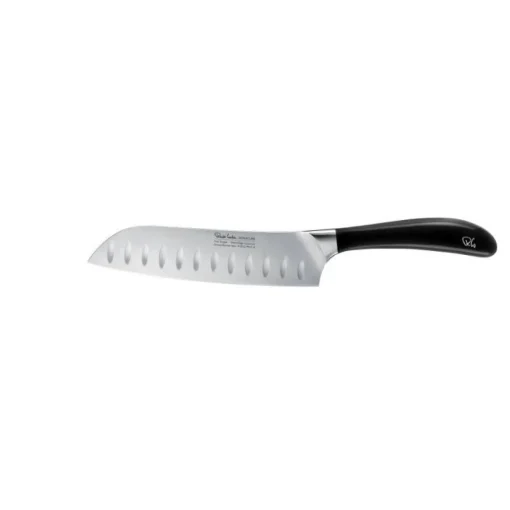 This 17cm Fluted Santoku knife forms part of the Signature kitchen knife range by Robert Welch. Each item in the collection has been designed with comfort, precision and strength in mind, created from a single billet of German stainless steel with a hand-sharpened finish of 15° for exceptional sharpness. Includes a lifetime guarantee.