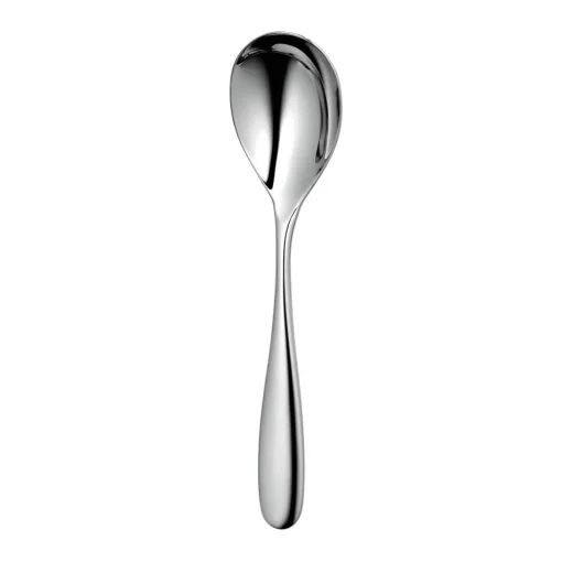 Robert Welch presents the Stanton Soup Spoon. This design showcases not only stunning artistry and impeccable craftsmanship but also cutlery that guarantees a comfortable and enjoyable experience for its users. Made from specially forged hardened stainless steel, this cutlery is resistant to rust and corrosion, making it ideal for both special occasions and everyday use.
