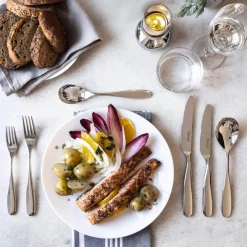 - Created from specially forged, mirror-polished 18/10 stainless steel with a thin gauge making the pieces light to hold