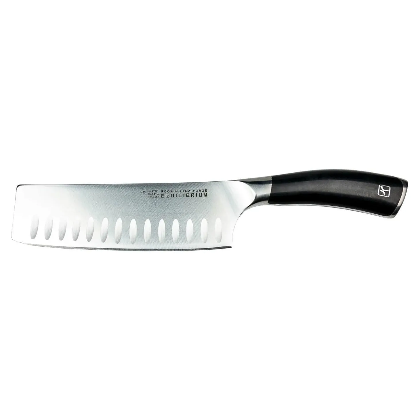 This 16.5cm Nakiri knife forms part of the Equilibrium range by Rockingham Forge. Each item in this collection features high-quality chromium-molybdenum-vanadian steel which has been ice-hardened for long-lasting sharpness and rust resistance. The knife-edge is hand-finished with taper-grinding for sharper cutting action and also a curved design handle for a more comfortable and easy grip. Perfect for chopping vegetables.