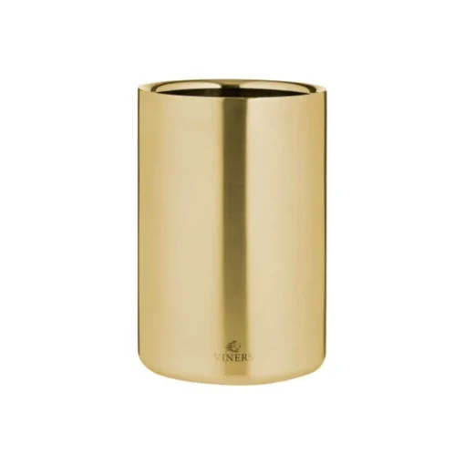 Viners presents the Gold Double Wall Wine Cooler from their Barware collection. This stylish, modern wine cooler features an insulated double wall made of stainless steel, designed to keep your wine chilled for an extended period. The interior boasts a highly polished mirror finish, while the exterior has a satin brushed finish. It’s the perfect cooler for anyone who enjoys their wine at the ideal temperature.