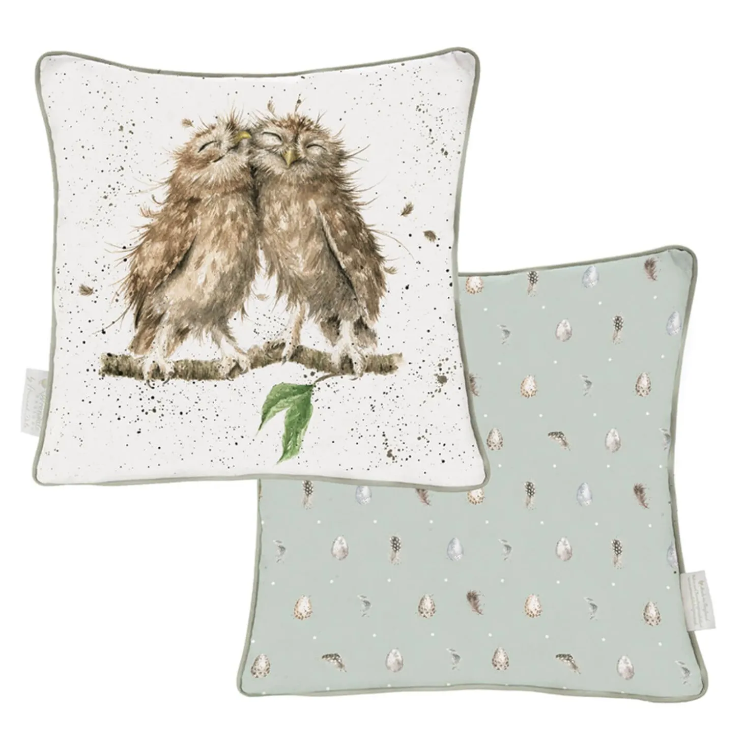 The ‘Birds of a Feather’ Large Statement Cushion by Wrendale Designs showcases beautifully illustrated with two owls with further owl designs on the reverse by Hannah Dale, printed on a premium cotton-linen fabric blend for superior comfort and quality. This double-sided cushion features a luxurious piped edge, making it an elegant complement to smaller Wrendale cushions. Measuring 60 cm by 60 cm, this feather-filled cushion is a stunning addition to any home.